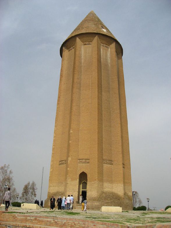 这座巨大的砖制陵墓高塔位于伊朗东北部戈勒斯坦省的贡巴德•卡武斯市市中心,是伊朗最精致的古迹之一。塔身呈十边形,塔顶为圆锥形,塔高70米(包括底座高度),塔身净高53米,是全世界最高的砖塔。