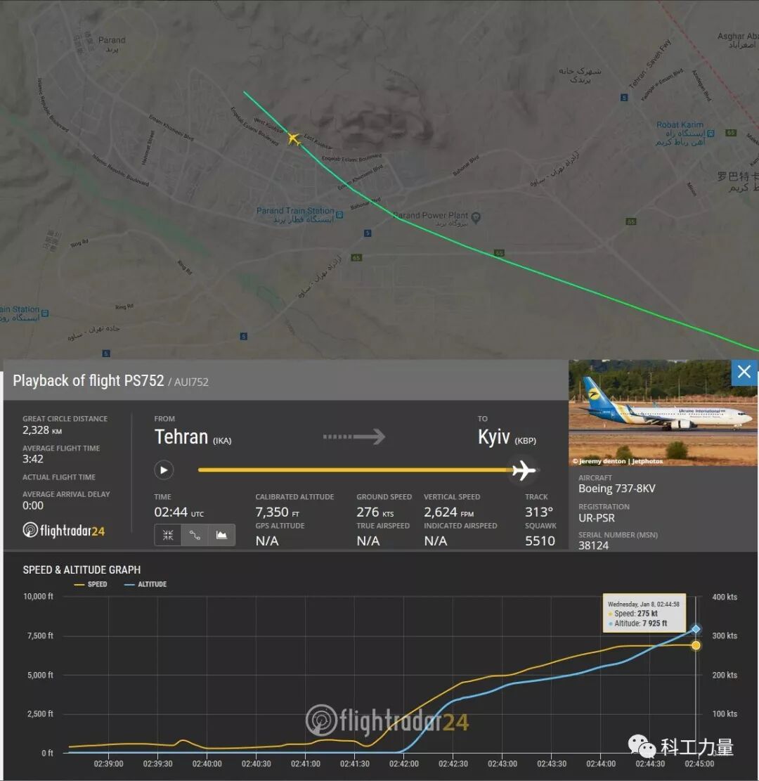 1月8日当地时间早上6点15分,乌克兰国际航空PS752航班从德黑兰飞往基辅时,起飞仅6分钟就失联并坠落,机上179人全部遇难。在这敏感时期发生空难无疑吸引了极大的注意力,而失事的飞机又是波音737,让人怀疑是不是波音客机又掉链子了。事发后几个小时,伊朗方面就宣布称空难是“机械故障”原因所导致的,如此快地断言因为飞机机械原因导致空难是极不寻常的,要知道这时候别说解读黑匣子数据了,黑匣子都没找到呢。而以笔者多年的经验来看,此次空难疑点重重,或许不仅仅是单纯的“机械故障”。为何笔者觉得这起空难并不简单?在得知空难之后第一时间先上FR24查看失事飞机的ADS-B数据,这时就发现有所不对。从FR24上的ADS-B数据来看,飞机起飞过程中一切正常,爬升也很正常,直到数据消失,而随后飞机就坠毁了。通常来说飞机失事时ADS-B数据会记录到飞机失去高度的数据,甚至会记录飞行员挽救飞机的努力。然而在伊朗空难中,在事发时就完全终止了,仿佛航电或通讯系统瞬间就被断电或被摧毁了。可以说过于“正常”的ADS-B数据本身就是一种不正常。FR24上伊朗空难失事乌克兰飞机的数据记录,在数据中断前一切正常,这种正常在空难中很反常几天前同一架飞机同样的航线有着完整的ADS-B记录,可见德黑兰地区ADS-B数据是可靠的,数据中断并非没有可靠的地面ADS-B接收器去年12月的哈萨克斯坦空难可以从ADS-B数据上明显看出状态异常2018年10月狮航737MAX空难更是可以通过ADS-B数据看出飞行员与MCAS的绝望搏斗与ADS-B戛然而止一样可疑的,还有“毫无反应”的飞行员。由于事故发生在飞机起飞后不久,且事故发生地区正好在人口密集地区,所以有拍摄到飞机坠落录像。根据外媒报道,从事故发生到坠落前后约有两分钟,从现场拍摄到的坠毁录像来看,光在镜头中飞机在天上就有至少30秒以上的时间。哪怕只有30秒,也足够飞行员向地面发出求助呼叫或者应答机挂出7700紧急代码。然而目前为止伊朗方面并没有放出飞行员与地面之间的通话记录,失事飞机在坠毁前也没有应答机的7700代码——这是遇到事故后最基本的操作之一。如若飞机发生特情后完全没有空地对话记录(也可能是伊朗方面尚未公开),那么对拥有两套通讯设备,每套通讯设备有三套供电线路(主电、备电、应急电)的现代客机来说,那或许代表着通讯系统完全被摧毁,或者飞行员失能。等黑匣子进行解读后,或许能了解飞机上到底发生了什么。至于伊朗方面宣布是“发动机故障”导致空难,在笔者看来也是有些站不住脚。且不说伊朗官方做出上述结论时距离空难发生仅有几个小时,空难现场都没有充分调查,在没有足够依据的情况下就宣布有些草率。而单一发动机故障/爆炸并不会使得飞机ADS-B数据瞬间中断,并且燃起熊熊大火导致飞机坠毁。根据现场拍摄的飞机坠毁过程,可以初步进行下分析。熊熊燃烧的飞机主体上有燃烧中的部件脱落,显然火灾已经造成飞机部分解体在坠毁前接近地面时飞机火光突然变大燃烧剧烈,疑为主要结构件脱落导致油箱或输油管路暴露使燃烧更加激烈由于携带大量燃油刚起飞就坠毁且飞机在空中就已经燃烧,坠毁时现场亮了半边天发动机在飞行中爆炸或者起火并不罕见,同为737-800,在2018年4月就发生过美西南航空WN1380航班飞行中发动机爆炸事故。该起事故中叶片脱落摧毁了飞机左发并由此引发发动机爆炸,碎片击穿客舱发生减压,在飞行员熟练的技术之下平安落地,仅有碎片击中处的旅客身亡。而飞机发动机空中起火的案例也比比皆是,无一发生类似本次空难的整机熊熊燃烧的现象。