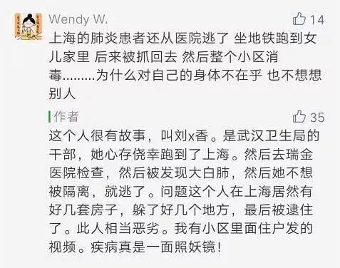 原来,这则消息是一个无头无尾没有得到任何实锤证实的传言,但后来被有用心之人就移花接木,把这则完全无头无尾的传言嫁接到了武汉市卫健委副主任刘庆香身上,宣称传言中的刘姓女子就是她。除了中伤刘庆香逃跑,还添油加醋地暗示刘庆香是贪官,在上海这种地方就有“四套房”。