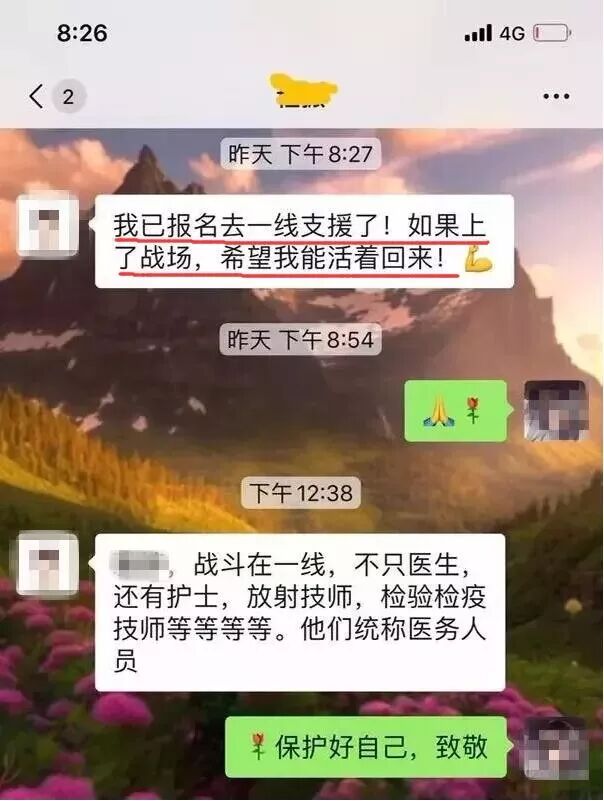 我是从别人朋友圈里看到你的请战书的,这也算是给我的家书。我坚决支持你的决定,但我更希望你能在救治病人的同时,保护好自己和同事。我等着你们凯旋!