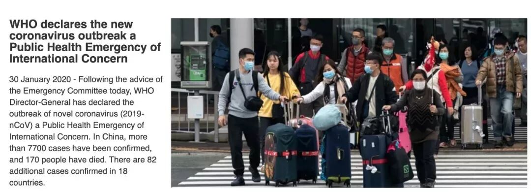在WHO的新闻发布会上,WHO的发言人解释道:宣布国际公共卫生紧急事件状态并非因为中国的疫情恶化,而是因为在其他国家疫情的传播。