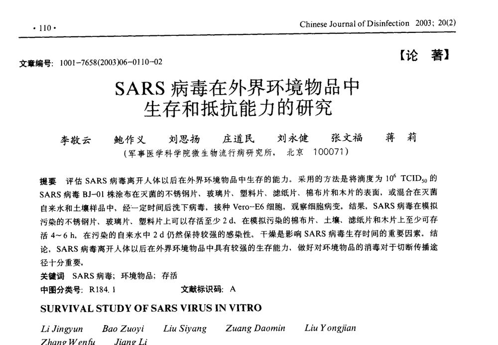 以 SARS 病毒为例,在这份军事医学科学院的研究中,它们在玻璃、塑料、金属上都可以存活至少 2 天,它们随着飞沫留在各种地方,而你的的手很可能就会摸到。