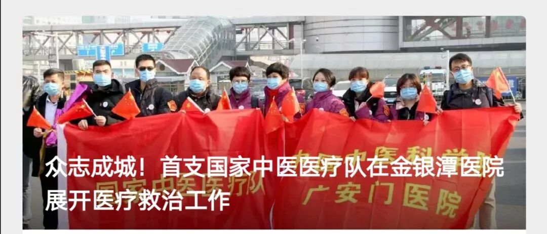 1月25日第一支国家中医医疗队即抵达武汉与金银潭医院对接,这支国家中医医疗队由中国中医科学院西苑医院和广安门医院的20名医护人员组成,27日正式开始诊疗工作。