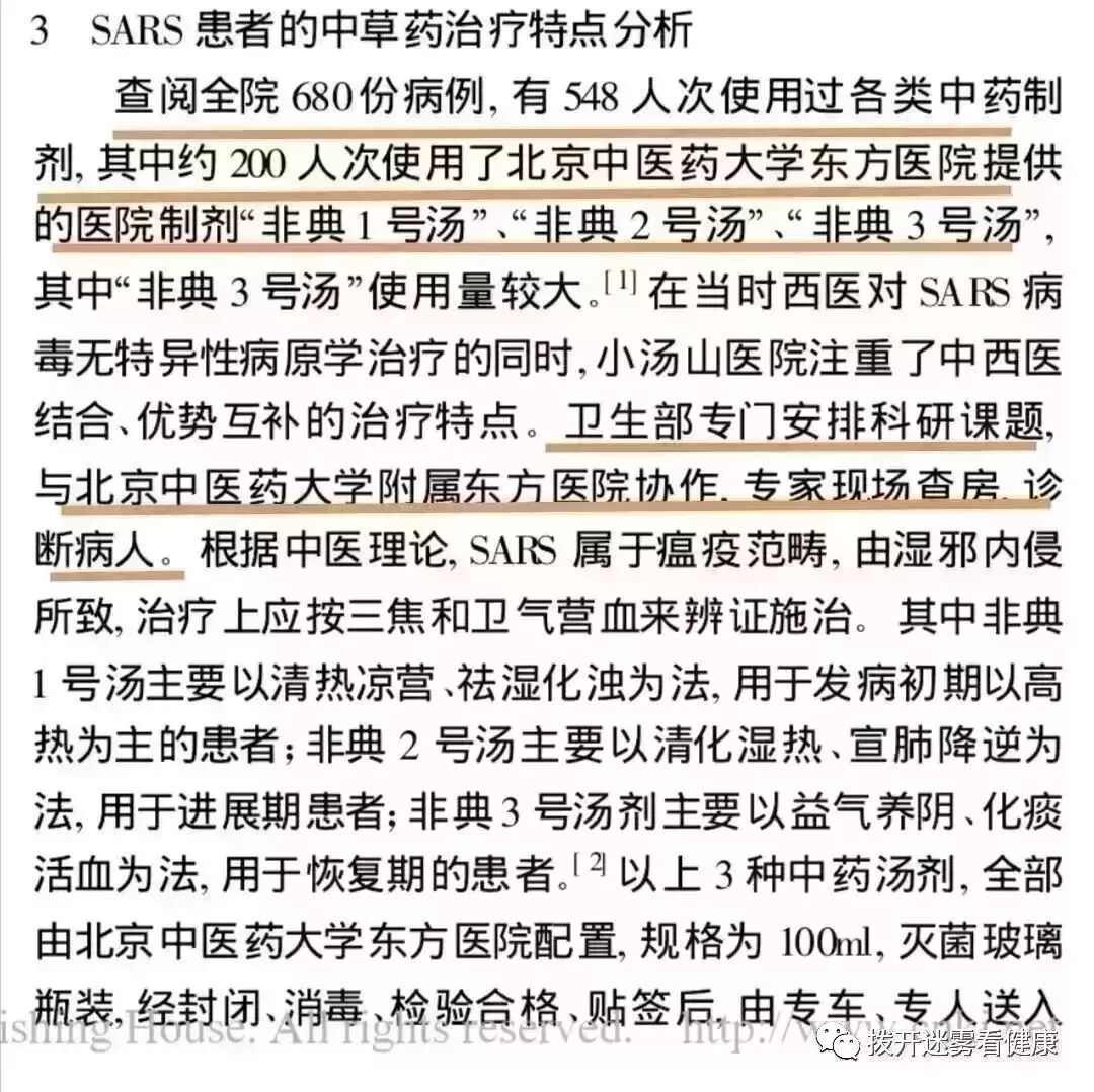 小汤山医院治愈率高的主要原因,就是中西医结合疗法。