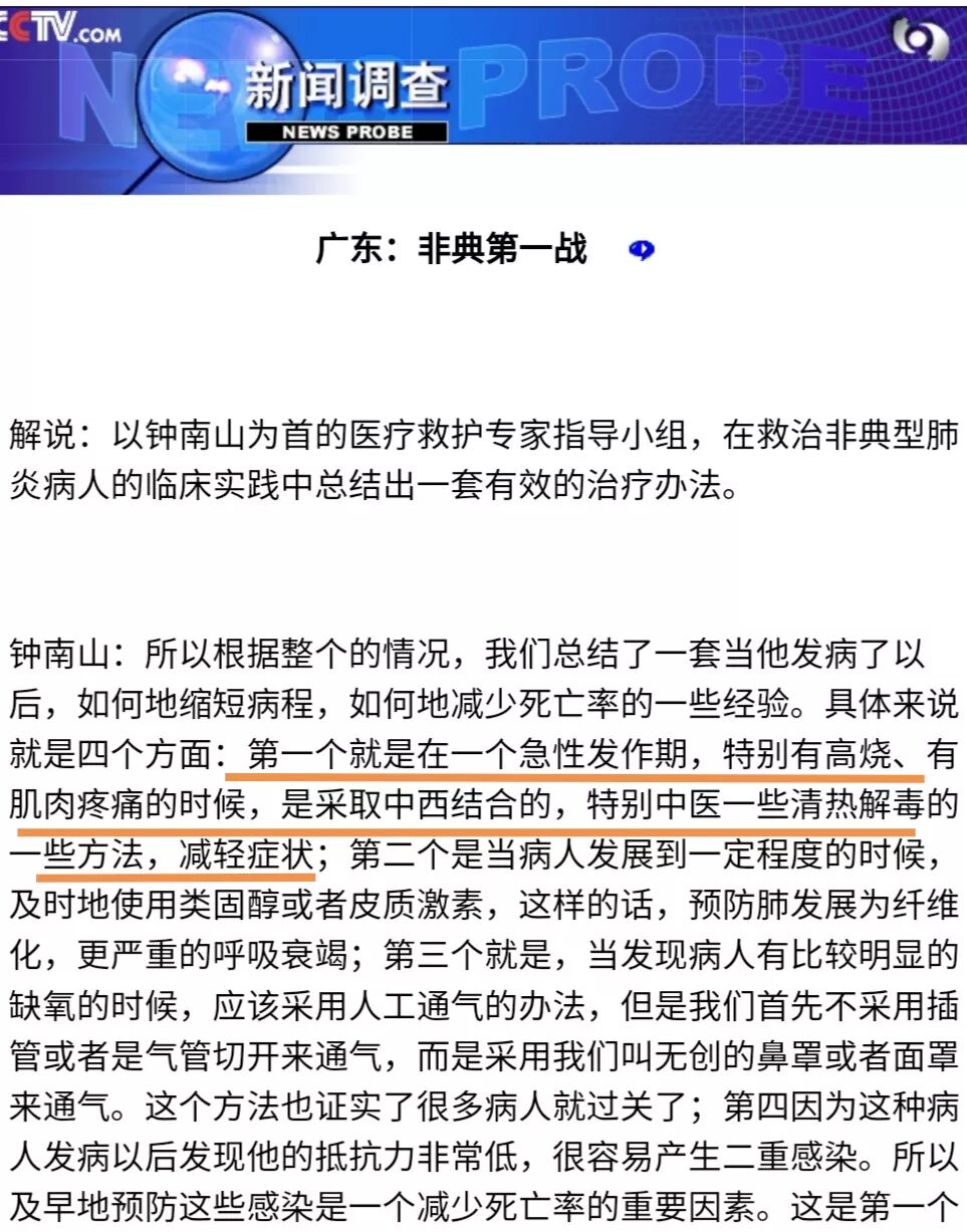 因此,钟南山院士大力推荐中医疗法,把中西医结合治疗作为非典救治广东经验的第一条:
