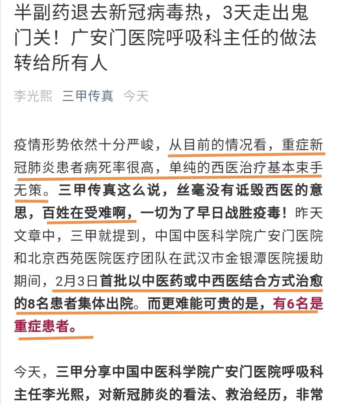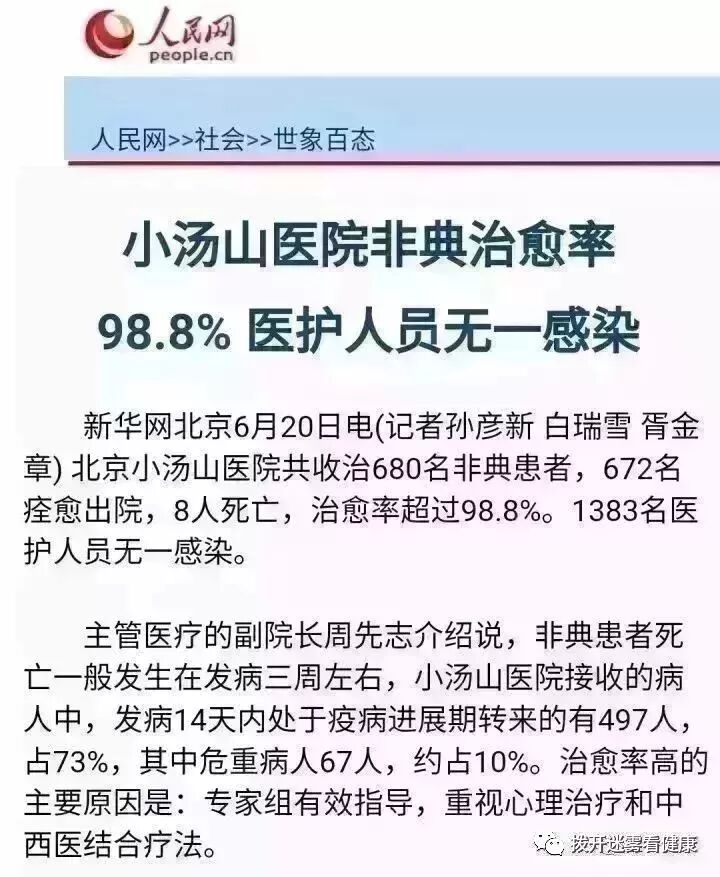 小汤山医院治愈率高的主要原因,就是中西医结合疗法。