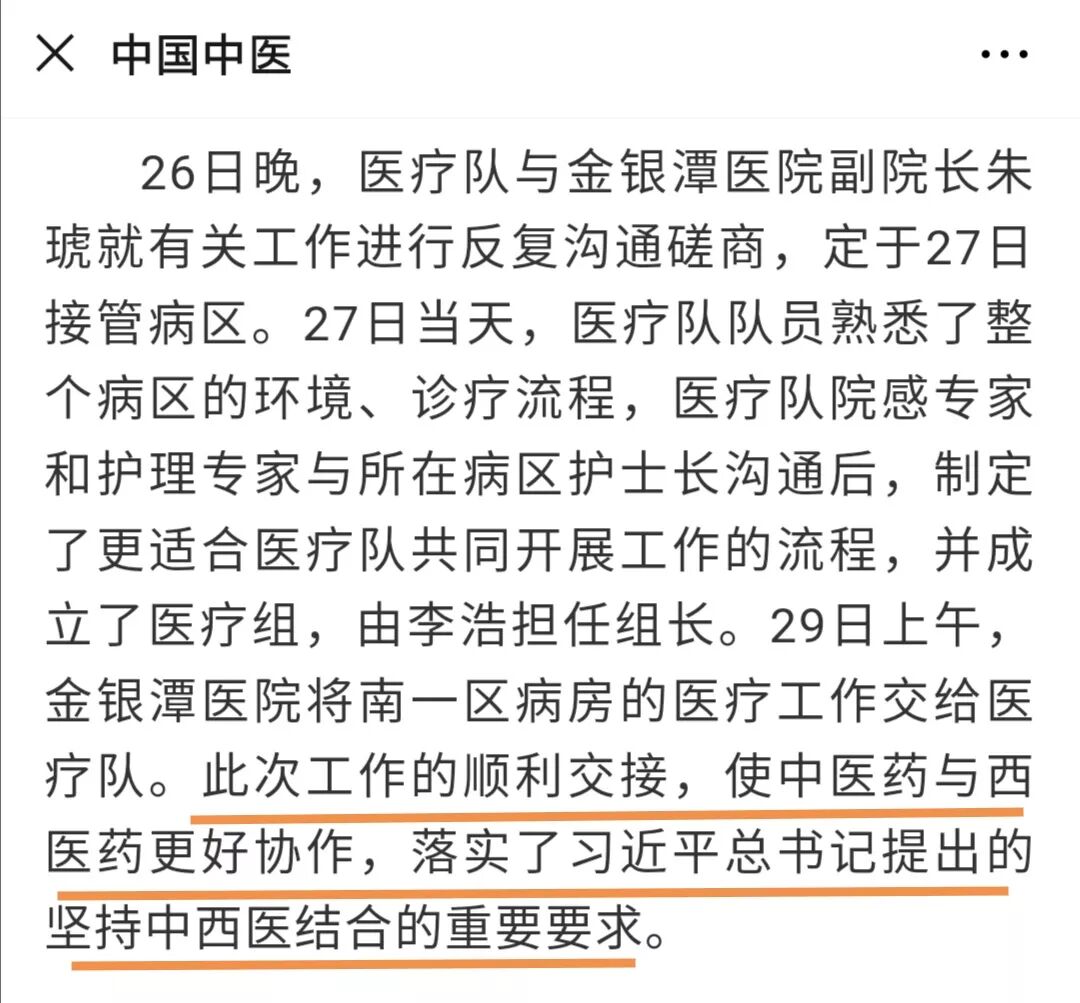 但是作为战斗主战场的武汉,定点救治医院全部是西医院。