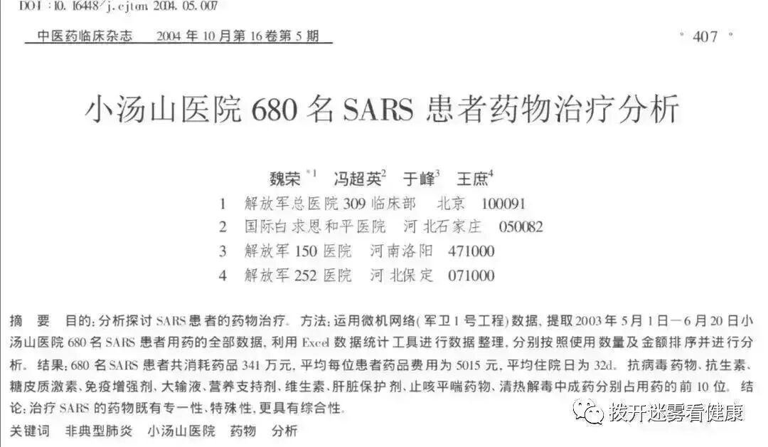 论文《小汤山医院680名SARS患者药物治疗分析》记录了具体的治疗方法: