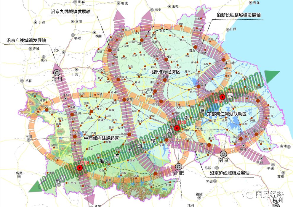 可以说,这相当于默许了南京向安徽腹地的纵深,默许了南京都市圈扩大在省外的“势力范围”。苏州无锡常州南通,无论是地理区位,还是基于产业协同发展,向上海靠拢,无疑都是务实之举。在长三角一体化规划纲要中,上海的定位再次获得提升。无论是“发挥上海龙头带动作用,苏浙皖各扬所长,加强跨区域协调互动”,还是提升“上海城市能级和核心竞争力,引领长三角一体化发展”,都说明了上海的关键所在。可见,上海向江苏、浙江腹地的纵深,乃是不可避免的趋势。与上海协同发展,也是江苏临沪城市的最可行选择。上海地铁将与苏州多条地铁无缝对接,而上海第三机场或将选址江苏南通。至于上海青浦、浙江嘉善、江苏吴江,则位列长三角生态绿色一体化发展示范区,未来或将统筹使用上海021区号,且可统筹120服务和110服务。虽然整个江苏省13地市都位列长三角,但只有南京、苏州、无锡等9个城市位列核心区,徐州、宿迁、淮安、连云港不在其列。这其中,淮安尚有南京都市圈的概念,而徐州、宿迁、连云港则从属于淮海经济区与淮河生态经济带。以淮河流域作为经济带,与长江经济带、黄河经济带,面临的一个共同问题是:区域过大,涉及省份过多,协调发展不易,中心城市难以确立。且不说江苏徐州和山东济宁都提出打造中心城市的想法,只看淮海经济区地跨苏、山东、河南、安徽四省,就知道省际之间的协调发展有多难。虽然徐州无论是经济实力还是规划定位,都有成为中心城市的潜力。但徐州毕竟不是万亿GDP城市,也不是强有力的区域龙头,想要真正辐射整个淮海经济区,必然存在着较大阻碍。可以说,江苏之所以给人“散装”的印象,正在于各地的经济实力都不弱,且各自都有属于自己的都市圈,彼此竞争合作,共同进步,从而成为中国省域经济相对独特的存在。