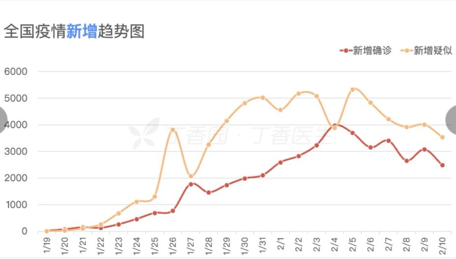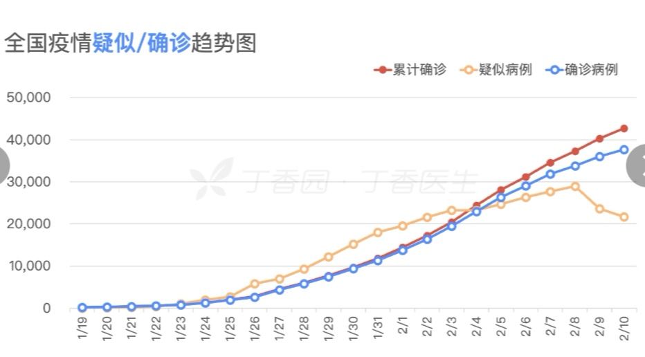 下面是全国疫情新增确诊和疑似的趋势图,2月9日因武汉拉网式排查数据有所反弹,但2月10日新增确诊病例和疑似病例都重新回落,而且都是创了过去十来天的新低。在武汉进行拉网式排查的情况下,数据依然是下降的,这就是好的现象。