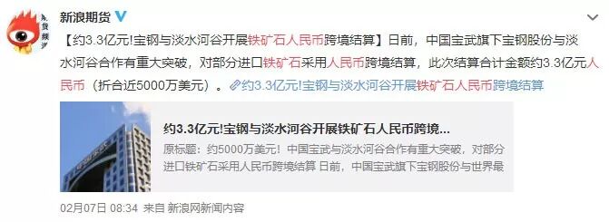 但是,在这次疫情里,我们直接用人民币买铁矿石了。