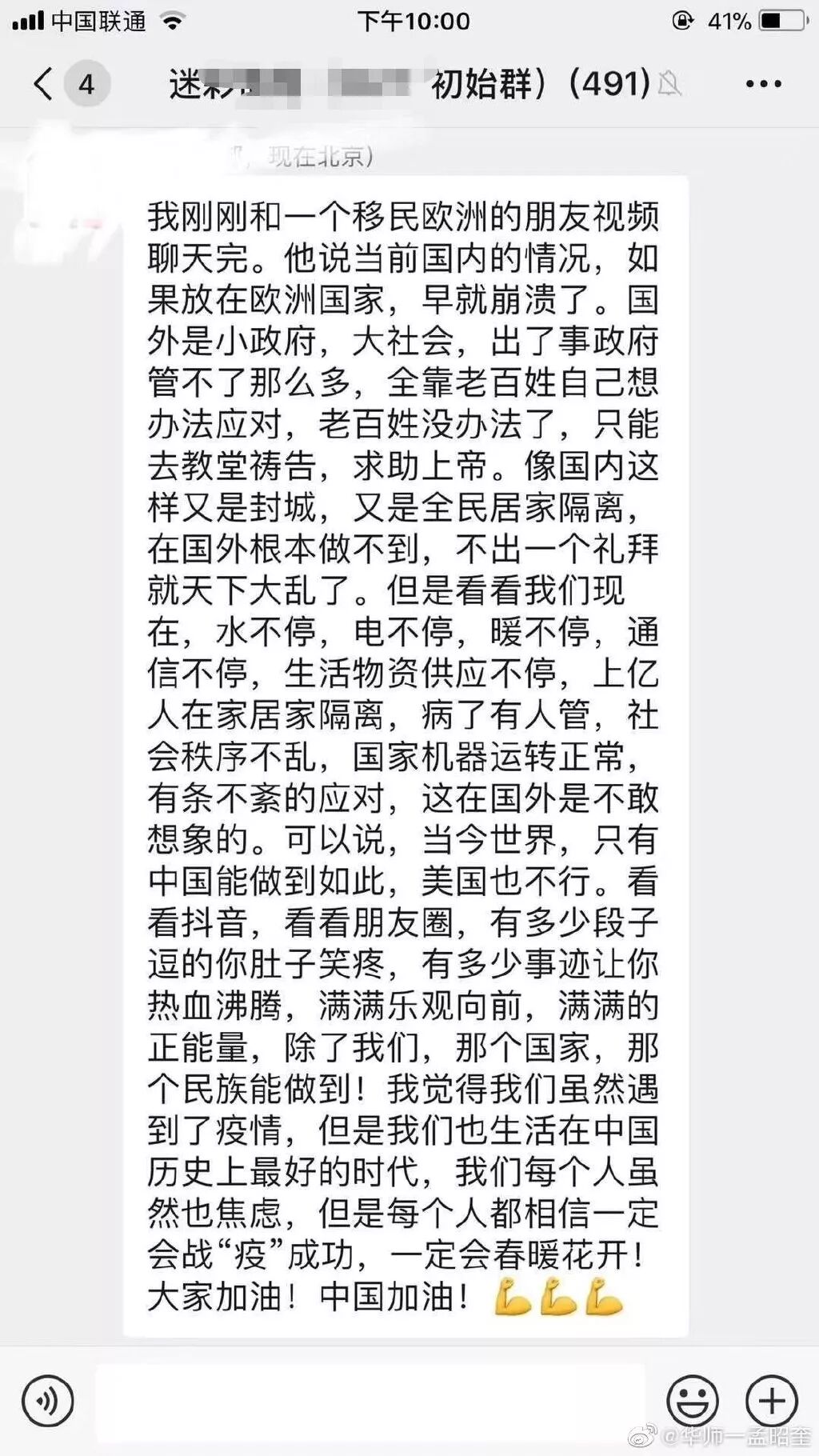 为什么有移民欧洲的网友说只有中国能做到现在这样?就是体制机制决定的。为什么习总书记一直强调我们一定要坚持“四个自信”,那是因为我们的道路、理论、制度与文化的确更优秀。虽然,相比发达国家,中国由于发展得晚不少方面还较为落后,但事上见真章,遇事的处理结果我们再进行比较,情况就完全不同了。