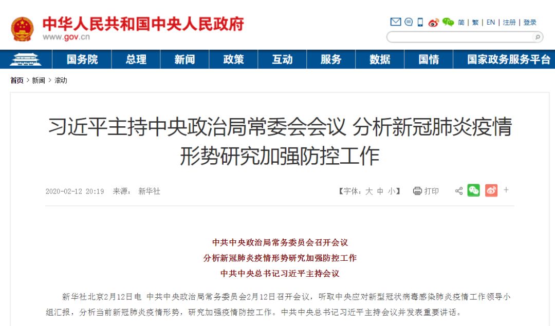 2月12日夜,中国最重要、规格最高的两个会议,连续发布了针对疫情防控的“纠偏令”。这意味,对“新冠病毒”的阻击战,进入到了“疫情防控+经济社会秩序恢复”的新阶段。首先发布新闻通稿的,是国务院常务会议。这次会议要求“在切实做好各项防控工作同时,有序推进企业复工复产”,通稿里有如下表述:主要劳务输出地与输入地要做好农民工等重点人群返岗的对接和服务。纠正对外来车辆和人员“一刀切”劝返等做法。