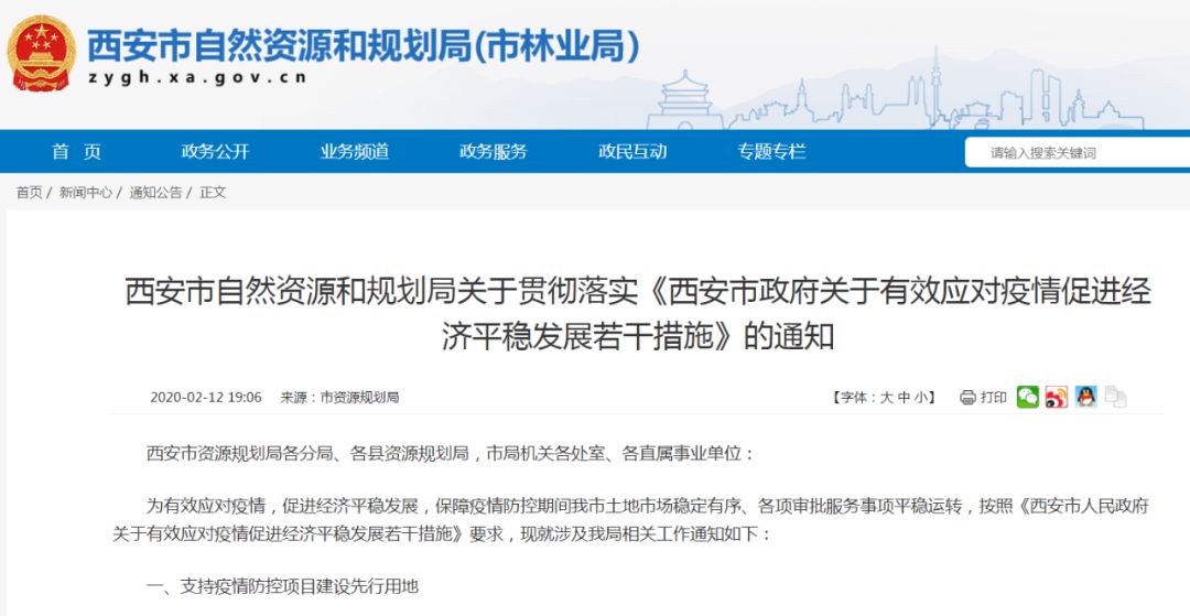 西安市自然资源和规划局,发布了“关于贯彻落实《西安市政府关于有效应对疫情促进经济平稳发展若干措施》的通知”,提出了“抗疫时期”的土地新政,其中包括如下内容:疫情防控期间,新出让土地原则上可按起始价的20%确定竞买保证金,出让合同签订后一个月内缴纳土地出让价款的50%,用地单位出具承诺书后,余款可按合同约定分期缴纳,缴款期限最长不超过一年。2019年11月1日之后出让,已签订《国有建设用地使用权出让合同》的,在2020年3月31日前,用地单位出具承诺书,可按程序与资源规划部门签订变更协议,约定自签订变更协议之日起一个月内缴纳土地出让价款的50%,余款分期缴纳,缴款期限最长不超过原合同签订之日起一年。土地成交后,用地单位缴纳50%的土地出让价款并出具承诺书后,可以预办理不动产登记手续,在银行抵押放款之前,缴清所有土地出让价款和相关税费后,办理正式的不动产登记手续。点评:这些措施将大大降低开发商的资金压力、资金成本,而且追溯了去年两个月拿地的项目。相信很多城市会跟进,甚至会有更大优惠。最近几天,土地拍卖市场已经开始有成交,而上海更一次拿出了28块土地打包出让,转让起始价高达310亿元。很明显,上海抛出的“王炸”带有深意。如果成交,不仅可以一次性给上海赢得数百亿收入,还可以让冰封的楼市、土地市场感受到暖意。之前楼市热的时候,地方政府会千方百计避免出现“总价地王”、“单价地王”。这次上海显然希望创造新的“总价地王”,以带旺楼市、带旺土地市场。