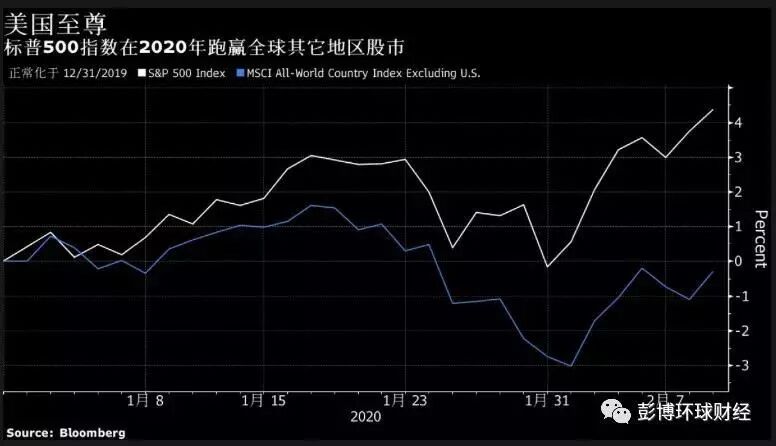 截止到2月10号为止,标普500指数今年来上涨了3.8%,但除美国以外的MSCI世界指数却下跌了1.1%。