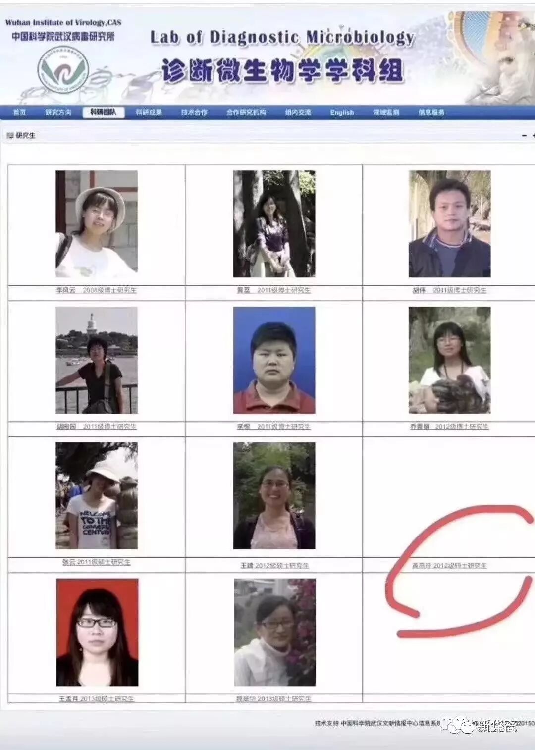 有人搜索到武汉病毒所官网上的“诊断微生物学学科组”网页,发现研究生名单上,黄燕玲赫然有名,就是没有照片,就是看不到人。有传言说她在工作岗位上感染新冠病毒肺炎离世了,但没有得到证实。