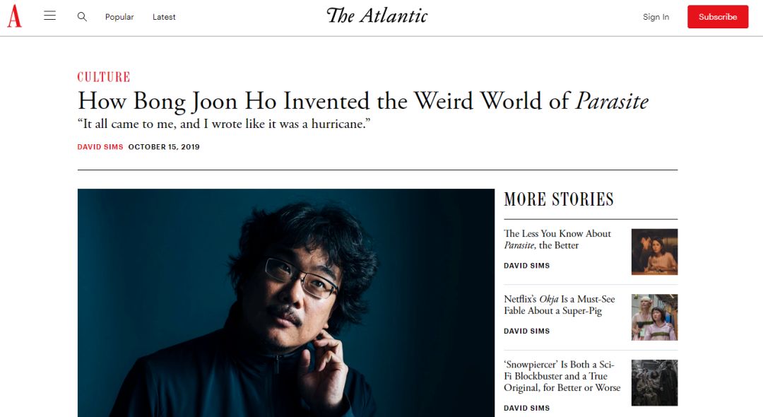 2000年,31岁的奉俊昊就拍出了自己的处女座《绑架门口狗 》3年后就拿出了震惊韩国影坛的《杀人回忆》,随后把最佳导演奖收入囊中。光有艺术是不够的,2006年奉俊昊拍出了科幻片《汉江怪物》,这部片子不仅仅拿下了大钟奖最佳导演,还打破了韩国的影视票房纪录。无论是艺术还是商业,奉俊昊都如探囊取物,这年他才37岁。凡是成就不可能的人,一生中,总免不了搭上几次时代浪潮的托举,没时间经历什么苦难和挫折。在做出《寄生虫》之前,2010年到2019年他又去混好莱坞,《雪国列车》和《玉子》就是这个时期的产物,特色鲜明,但是尚未成熟。积极拥抱好莱坞,迎合美国的审美模板,是奉俊昊今天成绩的另一个侧面。奉俊昊这个弄潮儿每次都能精准的踩到时代的前列腺上。