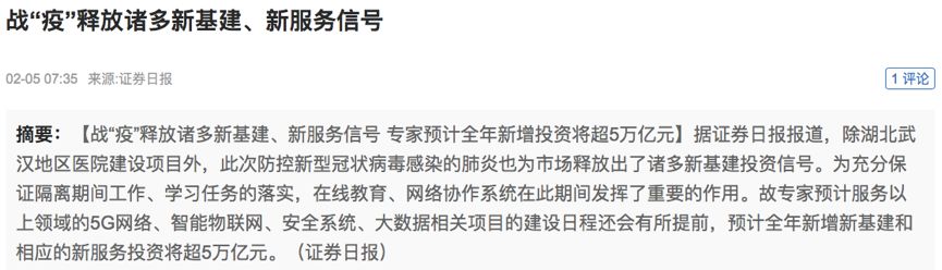 “放水”并不是应对此次疫情对经济产生影响的主要措施,随着疫情逐渐平稳,财政政策将成为扶持经济的主要动力,而“新基建”将作为核心项目,带动经济快速复苏。