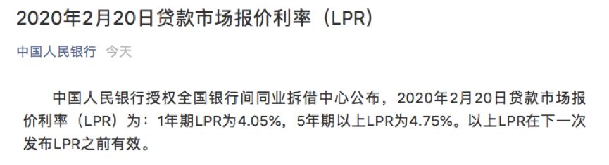 就在两天前(2月20日),央行发布了新的LPR利率指引,1年期的LPR下降10个基点,5年期以上的LPR下降5个基点。