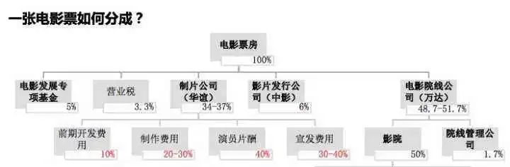 这个行业大部分收入都来源于票房,由上面四个环节按一定比例分配。