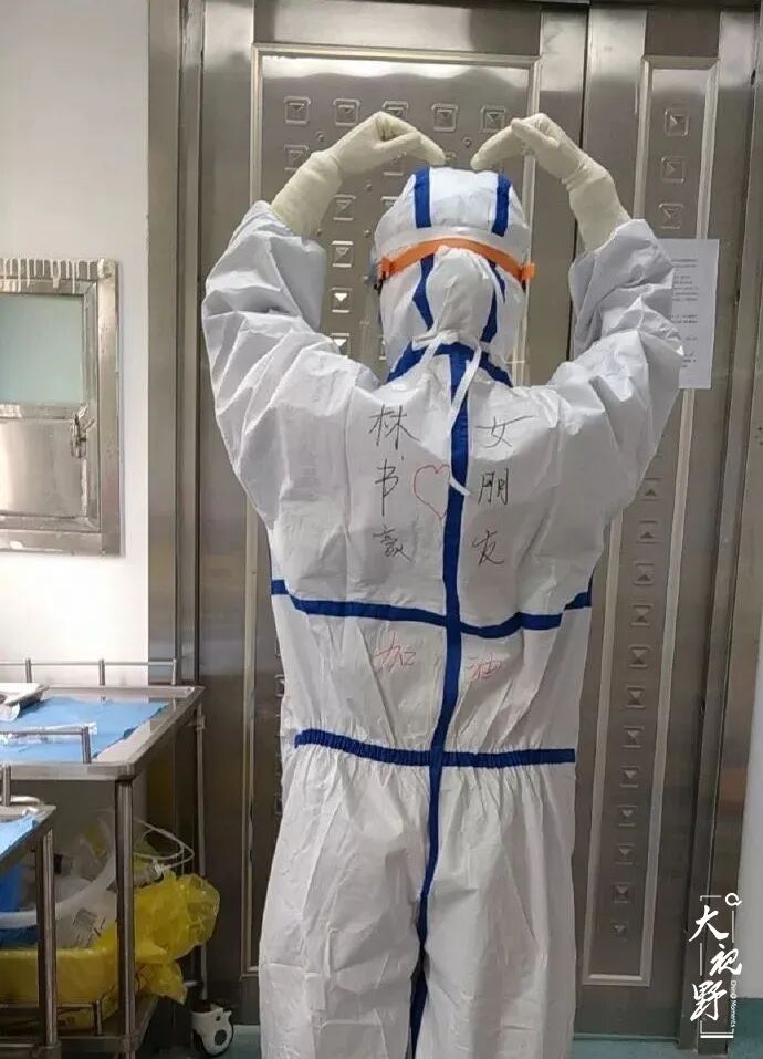我的大学同学俞凯是澎湃新闻的记者,正在抗疫报道第一线,他在同学群里分享了这样的故事。上海金山区中西医结合医院的一位90后护士,支援前方,到了武汉金银潭医院。在巨大压力下,为给自己打气,她在防护服上写上了“林书豪女朋友”的字样。而她自己被触动的一刻是,16床的老奶奶对她说:“我都85岁了,不用给我那么多药,把资源给其他人用吧……”