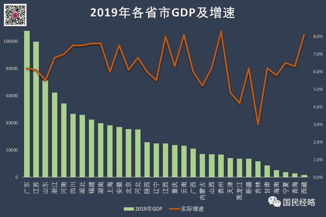 可以看出,北方地区除了北京、河南、新疆等之外,其他地区普遍面临挤水。而GDP修订减少最多的6个省份,全部都是北方省份,东北三省全部在列。同样不难看出,GDP总量最高的10个省份中,只有山东、河南位于北方,其他都位于南方。GDP总量最低的10个省份中,只有西藏、海南、贵州位于南方,而西藏、贵州严格说都应是西部,其他地区均位于北方。贵州(8.3%)、西藏(8.1%)、云南(8.1%)、江西(8.0%)、湖南、福建(7.6%)。