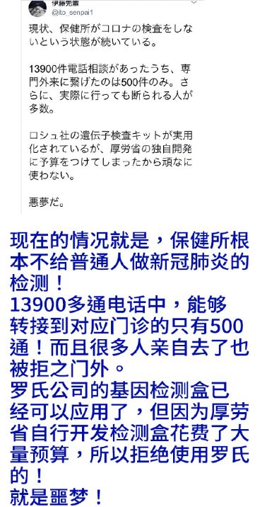 一、日本不是中国,资本主义国家的弊端就是,很难像武汉那样采取封城的果断举措,而且更不可能在10天之内建成众多的“火神山医院”、“雷神山医院”,一旦患者增多根本无法应对。二、而且日本人口密集,老年人居多,感染的几率非常大。目前日本很多医院接到的咨询电话超出平时百倍,势头有增无减,根本无法应对。三、日本全国能够治疗病毒性传染病的医院,只有410家,病床1871张。可以对应冠状病毒检测的地方,除了国立感染症研究所,还有羽田机场等三个检疫所,一天只能进行300次检查。有日本电视台也做了一个大概的计算,按照现在这个速度,如果日本全国人都接受检查的话,需要1150年的时间......