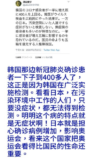 现在的日本政府,是即无能力快速控制疫情,又不能大动干戈的宣布真实的灾情,如此进退两难的局面,只能任由病毒的肆意传播,贻害百姓。