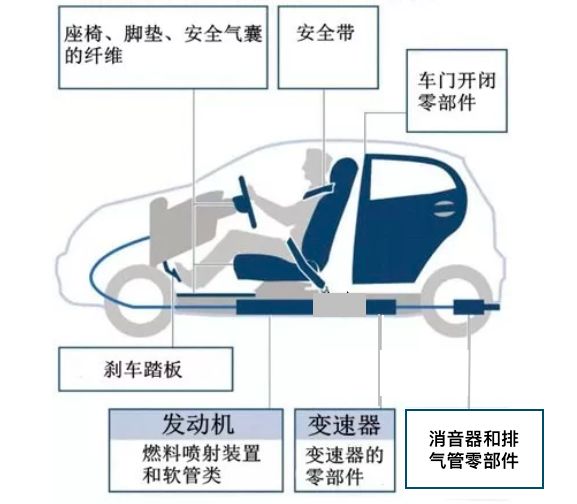 日经新闻曾绘制过一张中国产零部件在日本汽车产品的分布图: