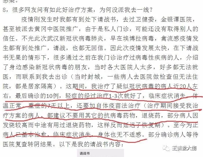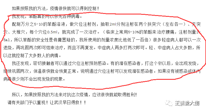而如果那会儿,公众都知道李医生的神奇疗法,只要打一针就能治好,简直比治疗普通感冒还要轻松,也花不了多少钱,轻症200元,重症400元就能搞定,那么,还有谁会恐慌害怕?不恐慌不害怕了,也就不会有封城之后,感冒和流感病人大量涌入医院,造成的交叉感染了!