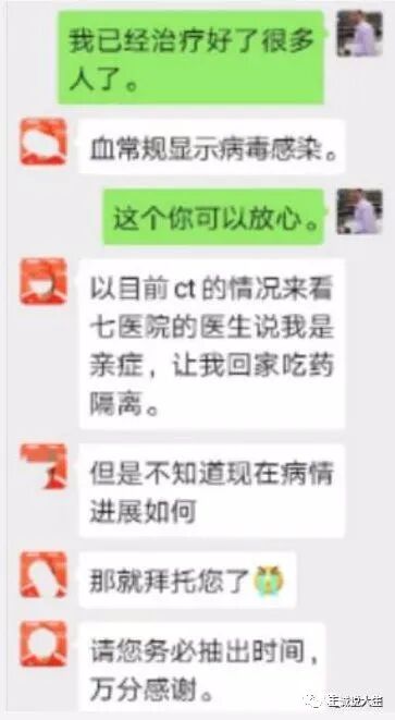 吸取前天的教训,我今天尽量保持客观公允,让事实来说话!我先给大家看看陈北洋一家找李中医治疗的微信聊天纪录,让第一手的资料还原事情的真相:
