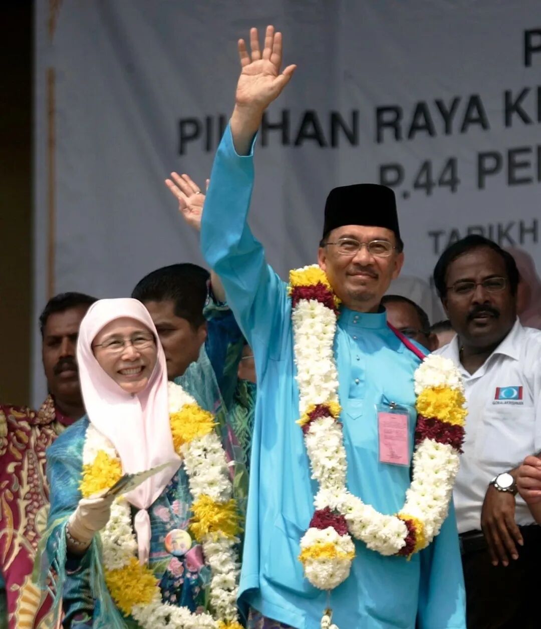 安瓦尔与妻子旺·阿兹莎(2008年资料图)