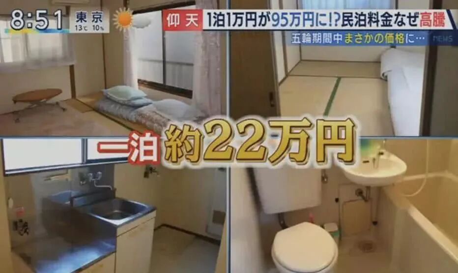 其中一家距离奥运会主体育场不远的一居室民宿,标价45万日元(约合人民币2.88万元),而平时仅为2万日元(约合人民币1280元),涨价足有22.5倍!