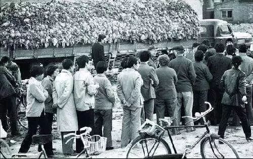图为上世纪80年代,北京人排队买冬储大白菜