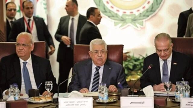 2月1日,巴勒斯坦总统阿巴斯(中)出席阿盟外长紧急会议