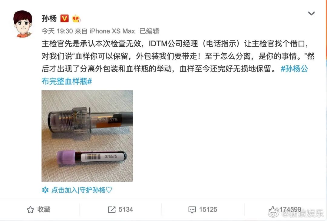 然而,昨天孙杨晒出了证据,保存完好的血样瓶,同时再次阐述了当时的细节。