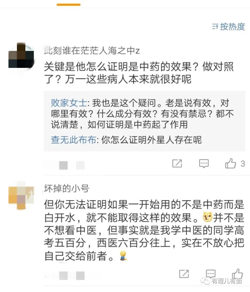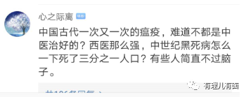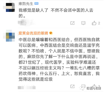随着中医药在抗击疫情中的作用越来越突出,在知乎、微博和一些论坛,各种中医黑的言论却像木马病毒一样开始蔓延。他们认为“中医中药其作用微弱,副作用极大,毫无疑问是伪科学!慢慢地会被现代医学全部覆盖。”这其中甚至不乏一些有高知,或留学归国的专业人士,打着科学的旗号抹黑中医。中医俨然成了一个辐射塔,他们呼吁,“远离中医,就是珍惜生命。”而对于中医在治疗新冠肺炎中的作用,更是不以为然。
