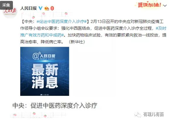 2月13日深夜,一则重磅新闻曝出:中央应对新冠肺炎疫情工作领导小组会议要求:强化中西医结合,促进中医药深度介入诊疗全过程,及时推广有效方药和中成药。加快药物临床试验,有效的要抓紧向救治一线投放,提高治愈率、降低病亡率。