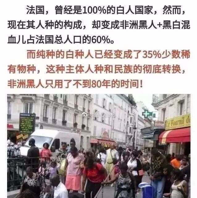 还有法国、英国等前殖民地宗主国,也面临着移民的巨大问题,法国外来移民的新增出生人口已经超过了法国本土白人,号称浪漫之都的巴黎让穆斯林移民和黑人移民搞得一团糟,到处是犯罪和脏乱的社区,人们都在笑称法兰西共和国很快就要变成法兰西斯坦了;英国也好不到哪里去,许多城市和乡村穆斯林人口已经占据了多数,也有沦为英吉利斯坦的趋势。不但是英国和法国,整个欧洲的移民问题都很严重,有沦为欧罗巴斯坦的趋势。