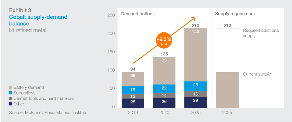 图为麦肯锡“全球钴资源需求趋势”