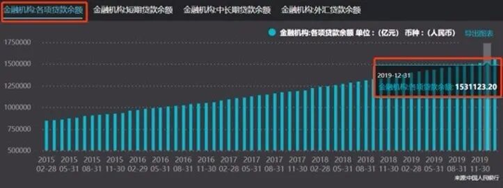 数据显示,截至2019年末,我国金融机构各项贷款余额为153.11万亿,其中个人住房贷款余额30.2万亿,占比约为20%。如果加上8.4万亿的住房开发贷款余额,占比则达到了25%!
