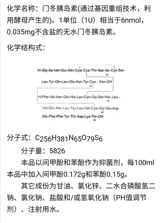 我们其实可以先看看临床上常规用来皮下注射的门冬胰岛素的组成: