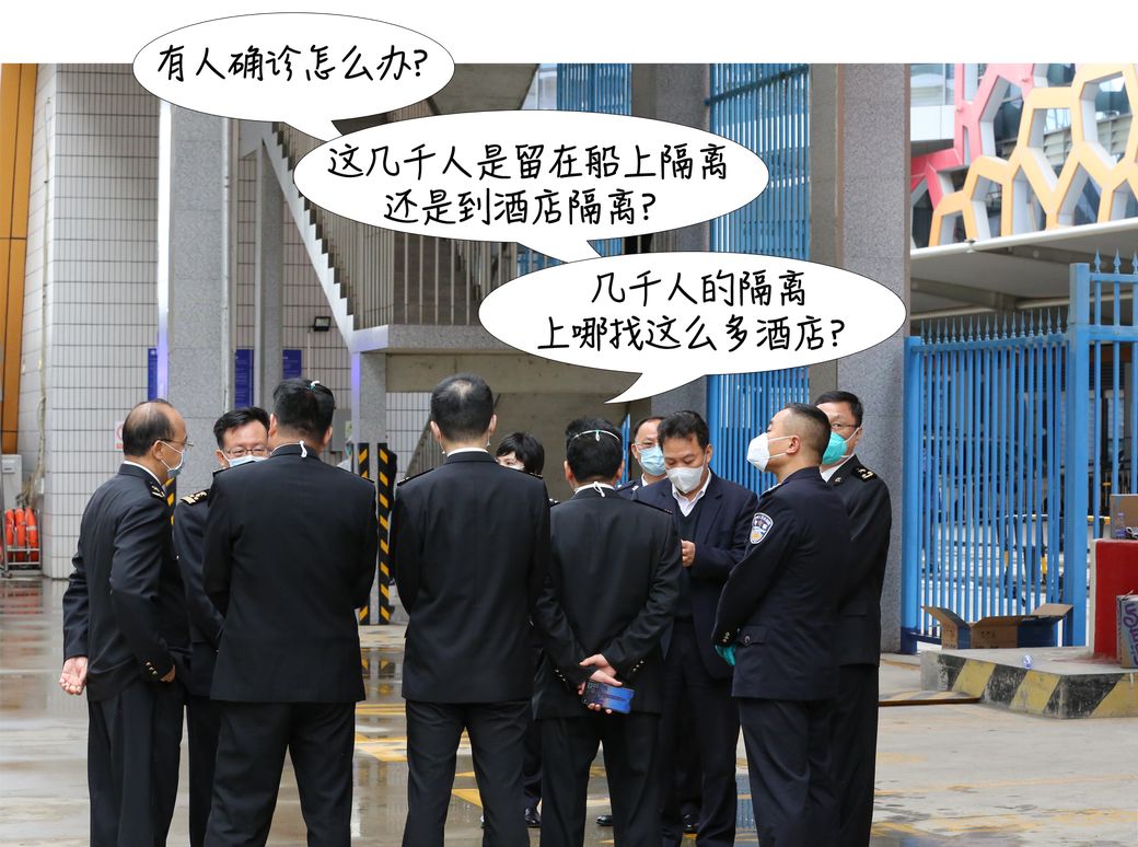 兵贵神速,会议结束,作战指令便立即下达,各部门战斗人员就位。凌晨三点,滨海新区卫健委11人和东疆海关7名工作人员已经来到国际邮轮母港,在凌冽的寒风中等待邮轮的到来,为登船取样检测做最后准备。