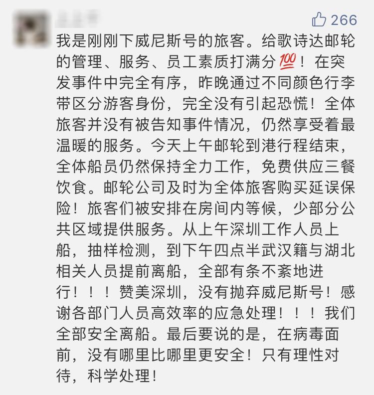 俗话说,不怕货比货,就怕人比人。从“钻石公主号”和“至尊公主号”的处置情形,与天津市政府和深圳市政府的相关处置邮轮案例来看,我们就能明白什么叫中国速度,中国效率,中国的制度优势,坚定我们对中国在百年大局,大国博弈中必然胜利的信心!按说,美日都是当今最发达的西方国家,硬件条件比我们只好不差,但是美国和日本两国政府的效率、决策力和执行力连中国两个地方政府都比不上。