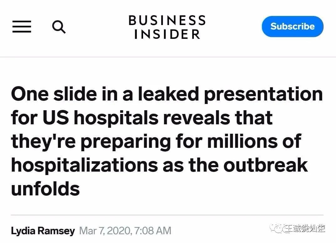 所以,美国的体制决定了,美国的新冠疫情必然会彻底失控,据美国《商业内幕》和《每日邮报》报道,一份泄露的文件显示,美国医院正在为9600万例新型冠状病毒感染者和近50万人死于新冠病毒爆发做好准备。下面是两份报纸的报道,有图有真相!