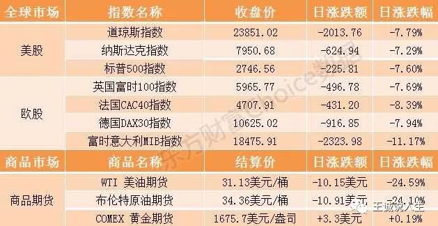 在美国新冠疫情引发的恐慌以及国际油价大崩盘的剌激下,美国股市昨日大崩盘,道琼斯指数跌幅超过了2000点。盘中一度触发熔断机制,在下跌到23979点,也就是跌了1884点,跌幅达到7.29%的时候,触发了熔断机制。