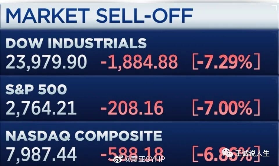 但是即使是触发了熔断机制也抵挡不了股民们的恐慌,恢复交易后,美国股市继续下跌,最终收盘的时候,道琼斯指数暴跌了2013点,报23851,跌幅7.79%!这种跌法在过去10年的美股牛市中从未见过,只有08年的金融危机中才出现过!