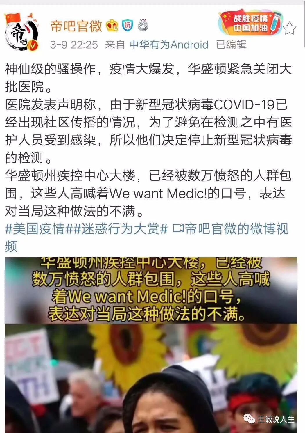 好久没有写美国了,不断有老铁要我写一写。李跃华医生的事已经上了解放日报,这是解放军的报纸,军队领导的必读物,应该是惊动了高层。我觉得李跃华的事情应该会有重大转机,我们的呼吁有呐喊也有了一些结果,由衷地为李医生感到高兴,也很庆幸我们有这样的大医仁者,有这样的科学天才。更祝愿祖国早日战胜新冠病毒,还我们一个自由、繁荣和强大的新中国!