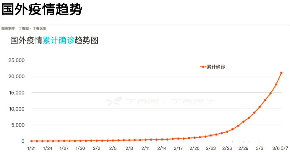 预计两周后,中国境外的累计确诊人数就会超过中国,目前看不到指数增长停下的迹象。