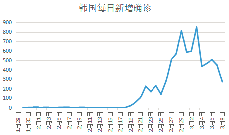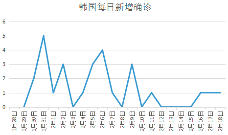 上图直到2月18日,韩国好像每日都没有新增病例,其实是有的,只是数量太少,与后面日增数百相比显不出来了。